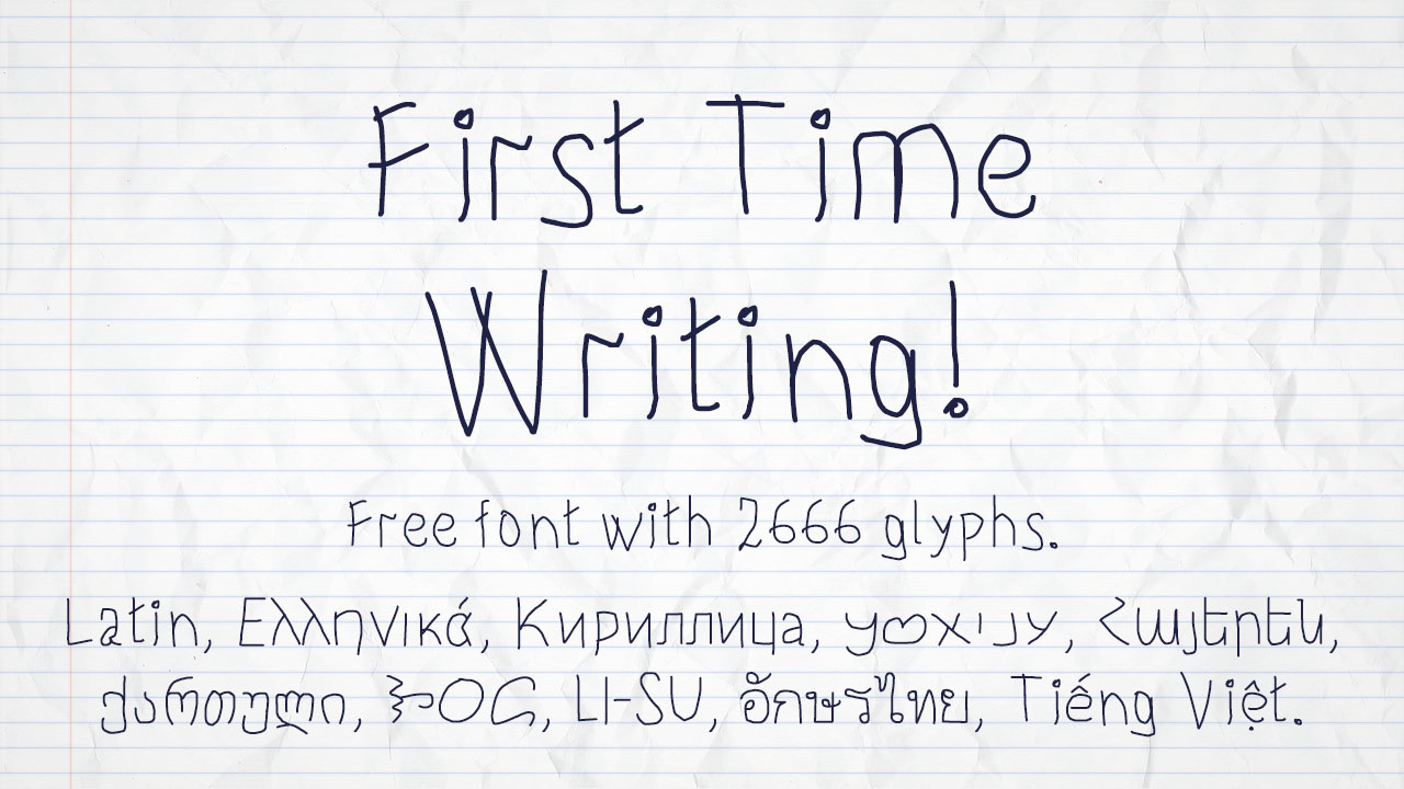 The font First Time Writing! contains 1 style and 2666 glyphs.