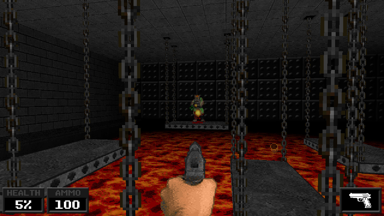 Wow. Great atmosphere. Nailed the retro fps. I wish you could move just a little faster. It's not obvious what the range on the gun is, and I wasted a ton of ammo early on. I also ran into an issue where on the edge of the ramp with the health pickup the dog could hit me, but looking down I could not hit it.
