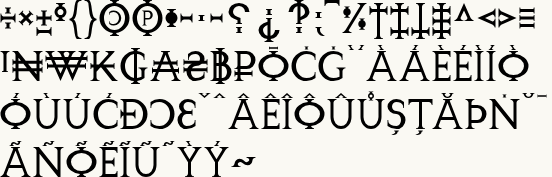 ÷×±°{}🄯℗•⁃‧‐⸮⸘‽⁏‾⁒†‡⸸⹋^<>≡Ꞌꞌ₦₩₭₲₳₴฿₽ŌōĊċĠġ`´ÀàÁáÈèÉéÌìÍíÒòÓóÙùÚúĆćĐđÐðƉɖƆɔƐɛˇˆÂâÊêÎîÔôÛûŮůȘșȚțĂăÞþṄṅ˘ˉÃãÑñÕõẼẽĨĩŨũ˜ỲỳÝý~