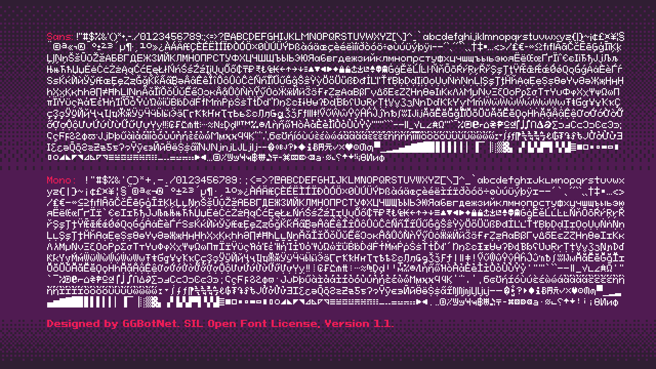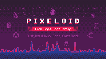 The font Pixeloid contains 3 styles (Mono, Sans, Sans Bold) and 1124 glyphs.