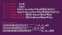 Added new 393 x 3 = 1179 glyphs. Added Web Open Font Format (.woff) file format. Changed glyphs of Mono: ():;[]{}¡¿ Changed glyphs of Sans: ():;<>[]{}¡¿≤≥įǴǵ Changed glyphs of Sans Bold: ()...