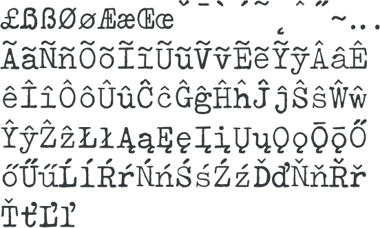 £ẞߨøÆæŒœˇˉˋˊ˜˛ˆ˝~‥․ÃãÑñÕõĨĩŨũṼṽẼẽỸỹÂâÊêÎîÔôÛûĈĉĜĝĤĥĴĵŜŝŴŵŶŷẐẑŁłĄąĘęĮįŲųǪǫǬǭŐőŰűĹĺŔŕŃńŚśŹźĎďŇňŘřŤťĽľ